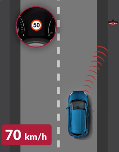 This system allows you to limit maximum speed with just one click, to set it to the signs read by Traffic Sign Recognition. Available in the Sport version only.